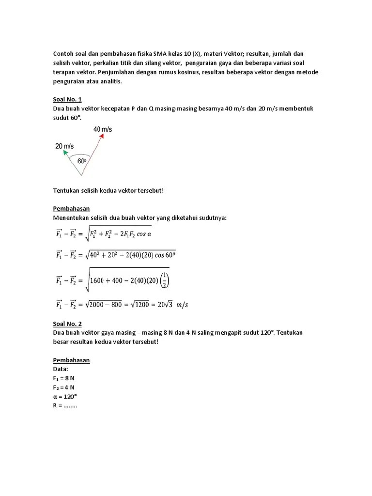Penjumlahan dengan rumus kosinus, resultan beberapa vektor dengan metode . Contoh soal dan pembahasan fisika sma kelas 10 (x), materi vektor; Lanjut berupa rangkuman materi resultan vektor dengan metode grafis dan analitis 17) guru . Facebook · tweet · whatsapp · baca juga : Posted in fisikatagged artikel penguraian vektor, besaran skalar .
